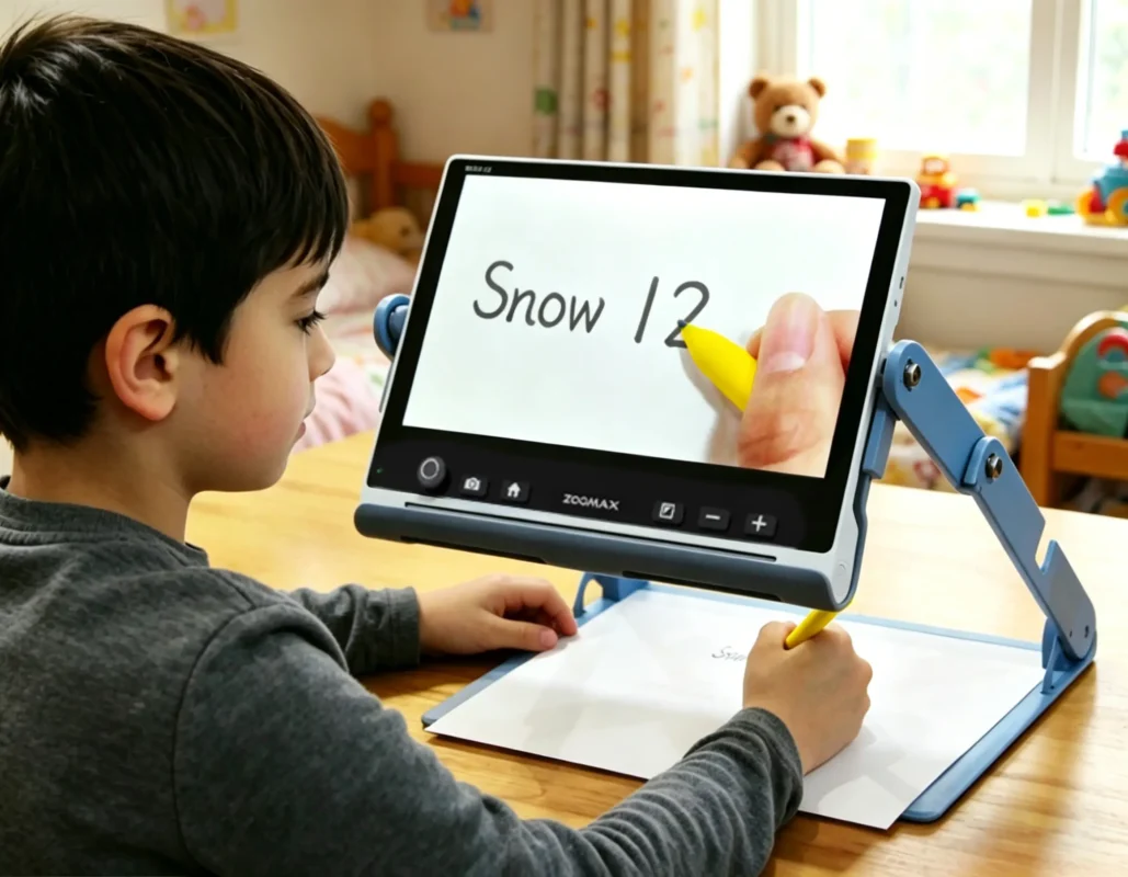 Stop the homework struggle! Discover how Zoomax Snow 12—the ultimate assistive technology for writing—uses digital reading lines and ergonomics to help low vision kids write with confidence.