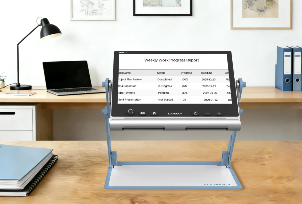 Working from home with low vision? Learn how to use the Snow 12, external monitors, and OCR to build a high-productivity workstation. US support & funding info included.